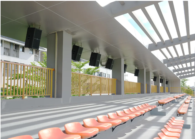 訓(xùn)練場地 本項(xiàng)目訓(xùn)練場地分為三個(gè),在系統(tǒng)設(shè)計(jì)期間,考慮到三個(gè)場地的設(shè)計(jì)結(jié)構(gòu)基本相同,最終采用相同的訓(xùn)練場館擴(kuò)聲系統(tǒng),使得整個(gè)深圳市青少年足球訓(xùn)練基地?cái)U(kuò)聲系統(tǒng),無論是從視覺上還是聽音效果上,都達(dá)到了完美的風(fēng)格和諧統(tǒng)一。 訓(xùn)練場地一和訓(xùn)練場地二的主擴(kuò)聲系統(tǒng)采用了32只MISSION的MSW系列全頻防水音箱。兩個(gè)場地各采用了16只MSW9012F和MSW9015F的防水線陣系統(tǒng),分布懸掛于兩個(gè)場地觀眾席上方覆蓋全場,各搭配8臺(tái)MI1300的功率放大器,將MSW系列全頻防水音箱性能發(fā)揮到極致。 訓(xùn)練場地三采用了16只MSW9012F全頻防水音箱固定安裝于墻頂,MSW系列的安裝方式非常靈活,可根據(jù)不同的項(xiàng)目情況進(jìn)行靈活安裝,適合各類墻面安裝應(yīng)用,同時(shí)搭配8臺(tái)MI1300的功率放大器,使其聲音能量均勻覆蓋聽音區(qū)。
