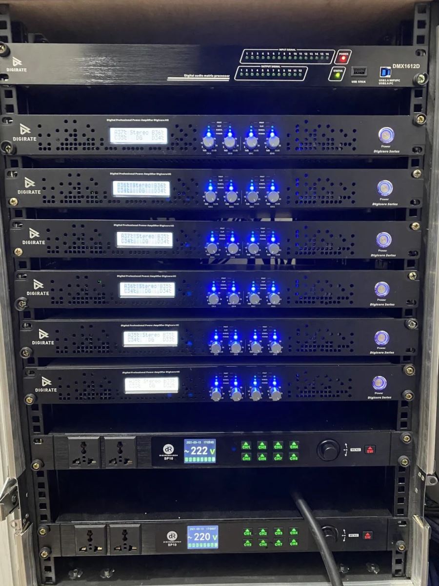 .jpg) .jpg) .jpg) 音頻處理系統(tǒng)采用了DIGIRATE(迪吉瑞)數(shù)字音頻處理器:DMX1612D系列、數(shù)字功放DIGICORE系列以及大量樂(lè)器話筒。