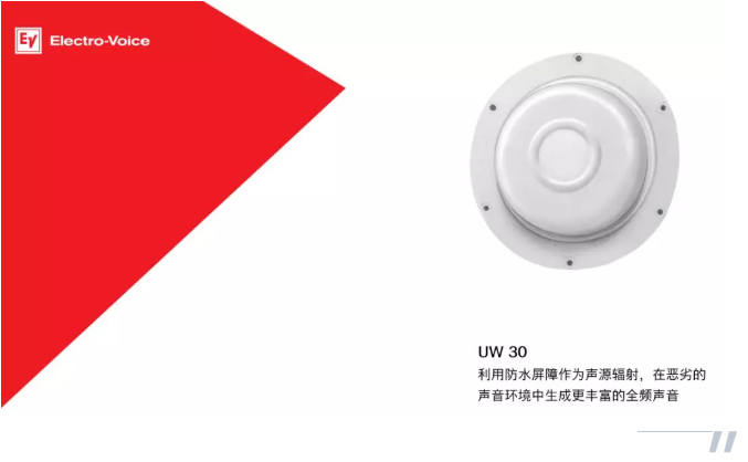 考慮到潛游以及水下花樣游泳的訓練和表演,我們還在游泳池底部選用了EV旗下UW30系列水下揚聲器,確保在水中的人可以清晰地聽到音樂以及岸上人員通過麥克風傳遞的信息,而不需要另外的接收器。