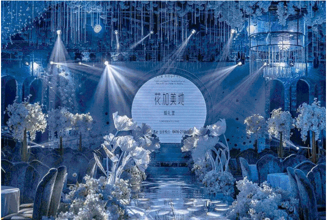花加美地一站式婚禮堂設有室內及戶外儀式堂、漫步花園,同時還設有多個大型宴會廳,最大的宴會廳可同時容納千人會議或用餐。各大宴會廳內均配有超一流的燈光、音響等硬件設備,可實現諸多類型慶典活動的需求?;用赖匾徽臼交槎Y堂的各大宴會廳其擴聲系統均選用了英國美聲線陣列揚聲器。