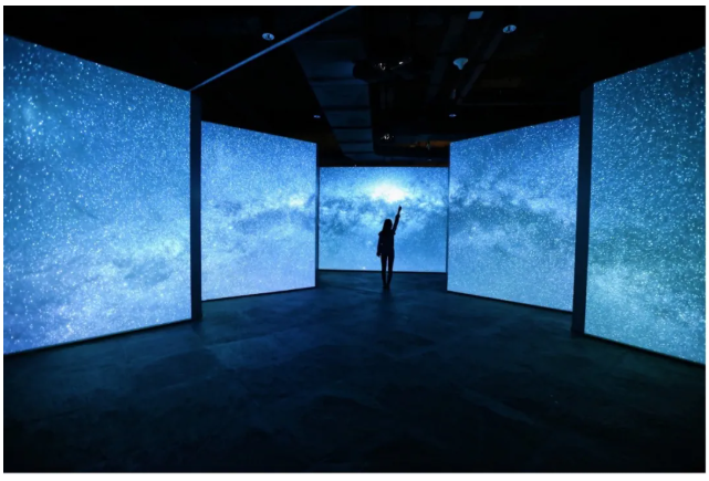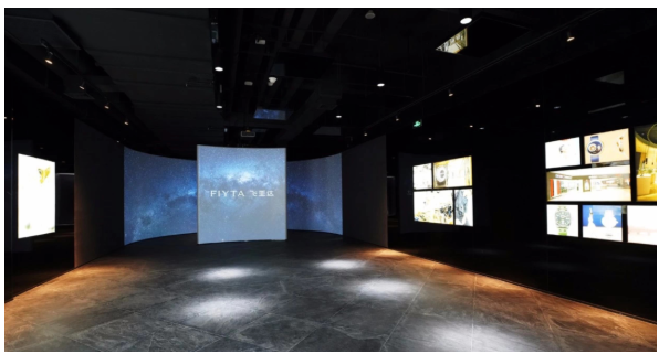 其中“五聯(lián)屏?xí)r空穿越廳”,展現(xiàn)穿梭時(shí)空的震撼,引出時(shí)間的產(chǎn)生與意義。通過(guò)上下三臺(tái)CB-L1060投影鐘表的鏈條,展示飛亞達(dá)表的文化和歷史。利用佳能投影機(jī)獨(dú)有的自帶0.54:1的鏡頭,通過(guò)有限的空間,展示出大畫面和細(xì)膩的圖像,還原飛亞達(dá)的鐘表歷史,詮釋出歷史與未來(lái)的演變。