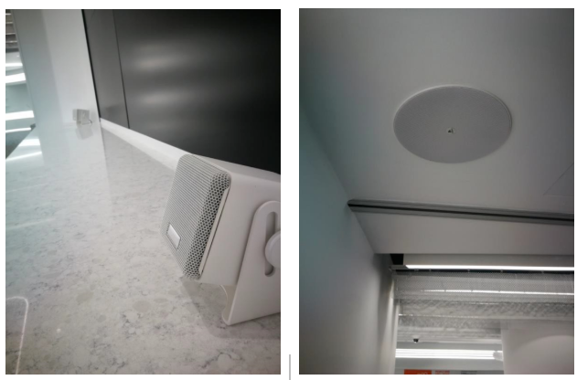 為了融入展示中心的設計觀感,選擇了德國EV的超緊湊型揚聲器i4,而且特別從德國工廠定制了白色版本,搭配DR的高保真天花揚聲器,在展示中心內做到“只聞其聲不見音箱”的觀演效果,而且擴聲系統的音質保證世界級水準,讓來到展示廳的賓客產生愉悅的觀感,進一步增強客戶體驗。