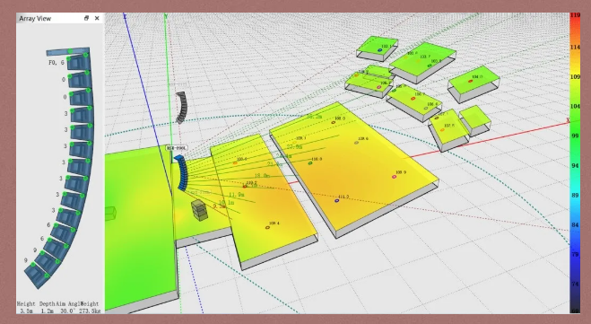 在正式進(jìn)場(chǎng)安裝之前,我們提前通過Resolution建模軟件仔細(xì)分析模擬了揚(yáng)聲器安裝點(diǎn)位、角度、聲場(chǎng)覆蓋等,為現(xiàn)場(chǎng)安裝及調(diào)試提供了更為具體的基礎(chǔ)和更多的時(shí)間。實(shí)際安裝過程中,揚(yáng)聲器在聲學(xué)結(jié)構(gòu)GRG上3D建模定位一次安裝完成,實(shí)現(xiàn)了精準(zhǔn)的覆蓋和良好的線陣耦合,為后續(xù)調(diào)試打下堅(jiān)實(shí)的基礎(chǔ)。最終調(diào)試的結(jié)果和前期分析模擬完全吻合,