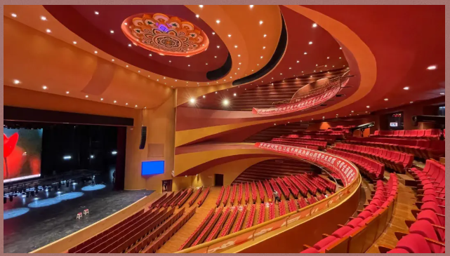 作為特大型甲等劇場(chǎng),珠峰大劇院總建筑面積約為3萬平方米,觀眾廳設(shè)有池座、一層樓座和二層樓座共三層坐席,可容納約1600名觀眾,因此劇院所需聲音覆蓋的面積很大,聲場(chǎng)均勻度成為我們系統(tǒng)設(shè)計(jì)調(diào)試的一大挑戰(zhàn)。旅游創(chuàng)意產(chǎn)業(yè)園區(qū)內(nèi)標(biāo)志性建筑物,大劇院地處。