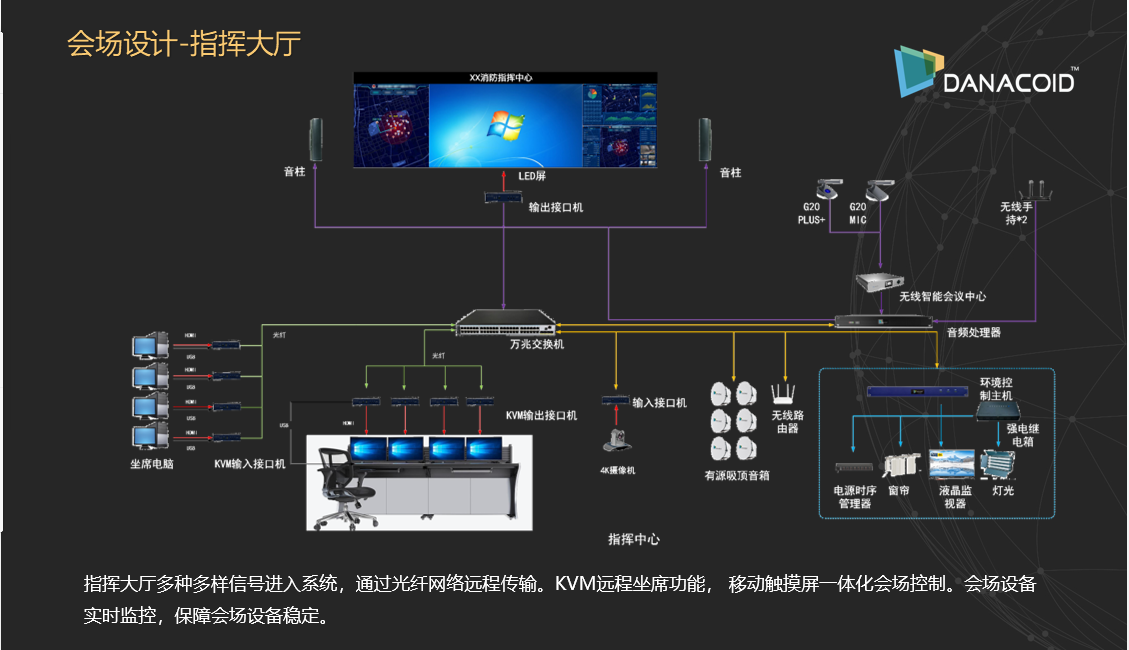 本項目旨在結(jié)合指揮中心工作特點,以指揮技術(shù)和信息技術(shù)為主導,充分運用現(xiàn)代顯示技術(shù)、通訊技術(shù)、網(wǎng)絡(luò)技術(shù)等先進技術(shù),對已有系統(tǒng)升級改造和功能擴充、改進,包括指揮中心的現(xiàn)有設(shè)備進行擴容和升級,使系統(tǒng)能即適應(yīng)新技術(shù)的發(fā)展,又結(jié)合武漢消防指揮中心的需求、輔助決策平臺的需求:構(gòu)建以數(shù)據(jù)展示、可視化調(diào)度、領(lǐng)導會商決策、多媒體擴容、多媒體設(shè)備互聯(lián)互通及集中管理等于一體的現(xiàn)代化、網(wǎng)絡(luò)化、智能化指揮決策中樞。