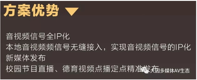 校園一體化演播室主要以全媒體信號采集設備為依托,校園網絡為基礎,數字視頻、課件為內容,數字化管理、發布平臺為核心,校園網絡電視臺為中介,在各類終端以及多媒體教室接收觀看,移動終端隨時隨地在線學習。精品課件、校園電視臺直播節目、專家講座等各種直播或者點播視頻、圖片、文字通過校園信息化之后,收看端可通過移動終端、多媒體教室、辦公室電腦等實時在線直播或點播。