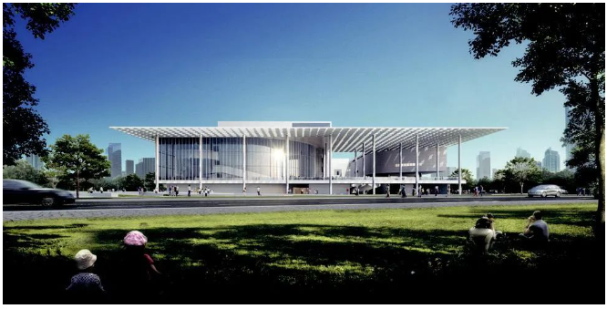 平潭國際演藝中心位于福建省平潭綜合實驗區,面朝開闊的海灣景觀。建設用地面積約31 374.21 m2,建設總建筑面積 3 8 9 7 2 . 8 7 m 2 ,其中地上建筑面積26 907.21 m2,包含大劇場、多功能廳、公共文化中心和公共服務配套等,地下建筑面積12 065.55 m2。大劇場及多功能廳配置了先進的聲光電設備,同時,這兩個廳堂也都進行了專業的建筑聲學設計。先進的舞臺設備及優良的建聲設計,使得平潭國際演藝中心完全可以滿足國內外大型歌劇、舞劇、綜藝、話劇、戲曲等節目的演出需求。平潭國際演藝中心的建成投用,提升了平潭國際旅游島的知名度和影響力,也將對兩岸文化藝術交流與合作發揮重要的促進作用。圖1為平潭國際演藝中心效果圖。