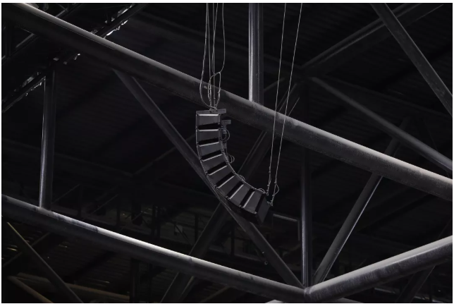 由于馬道在膜上方,揚聲器沒有固定安裝點,因此安裝和檢修非常困難。另外,其上下擺動的幅度達到1.5米以上,為整個擴聲解決方案設(shè)計增加了很多難度。