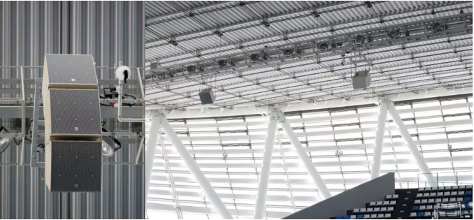 經(jīng)過再三研究、博世團隊借鑒了之前給倫敦碗提供的安裝方式,邀請了專業(yè)的設(shè)計人員在每個鎖頭上設(shè)計了一個安裝點并安裝滑輪,通過卷揚機把揚聲器卷上去,當(dāng)檢修時則采用同樣的方式將揚聲器卸下,攻克了吊掛技術(shù)難點。