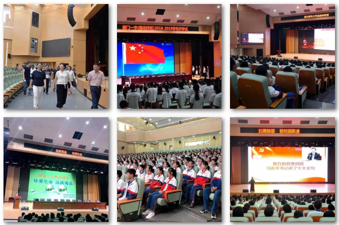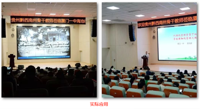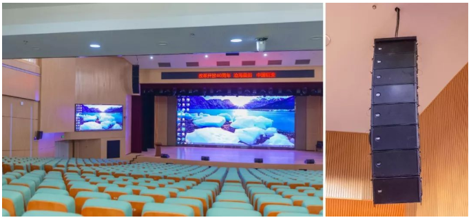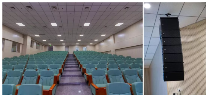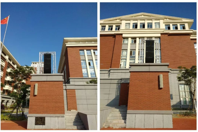 在400米標(biāo)準(zhǔn)運(yùn)動場主席臺兩側(cè)吊掛著兩串線陣列,為適應(yīng)現(xiàn)場環(huán)境采用了RCF全天候HL號角負(fù)載陣列系統(tǒng)。