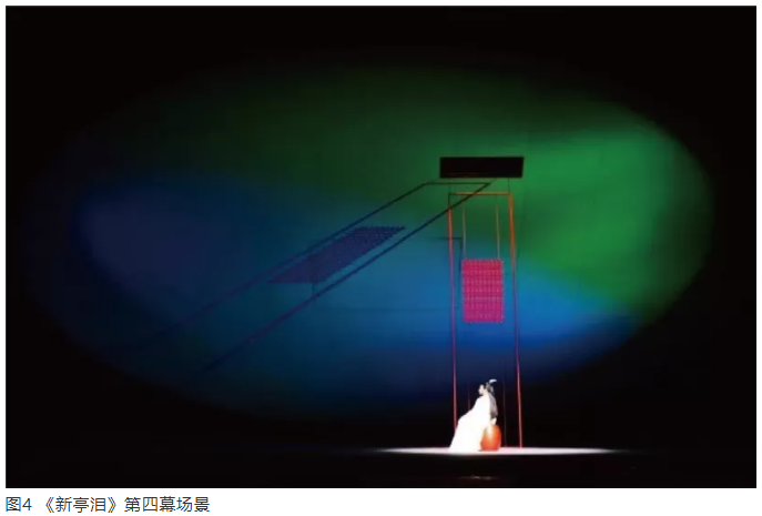 總之,《新亭淚》展現出的舞臺設計和燈光設計的融合,代表當代戲劇創作的整體觀念。作為燈光設計或正在求學燈光設計的學子,千萬不要把自己定位僅僅是一個燈光設計,而要有更高的眼界和追求,要認識舞臺設計,要了解導演與表演,要理解劇本。只有這樣,才能有較高的戲劇素質和素養,在未來的創作中更有機地融入戲劇。