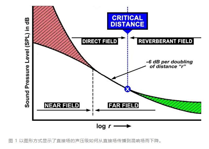 請注意,雖然在整個混響場中混響聲壓級的變化小于 3 dB,但由于平方反比定律,直達聲繼續下降。對于語音和快節奏的音樂,較高的直接/混響比是首選——如在典型的自由場中那樣 (而較低的直接/混響比,其中混響聲比直達聲更大)。