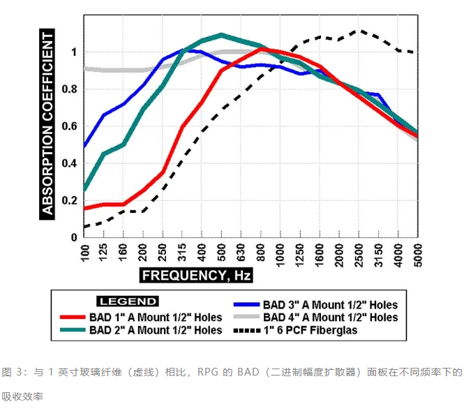 雖然有一些高 Q(窄帶)吸收器可用(可以像參數/陷波均衡器/濾波器一樣),但事實上,自 1990 年代以來,當 RPG 的 BAD(二進制幅度擴散器)面板等產品出現時,這種低 Q 聲學面板(有時也包含一些擴散特性)對于“輕量級”房間非常有效 —— 意思是用框架構件和石膏板建造的房間墻壁(與混凝土或石頭建造的大型大廳相比)。