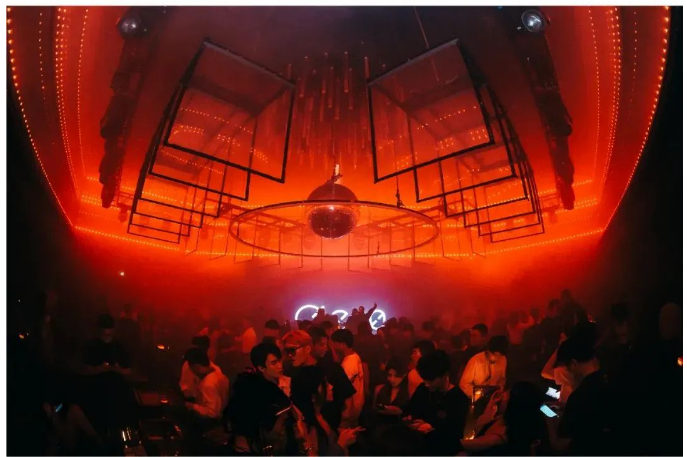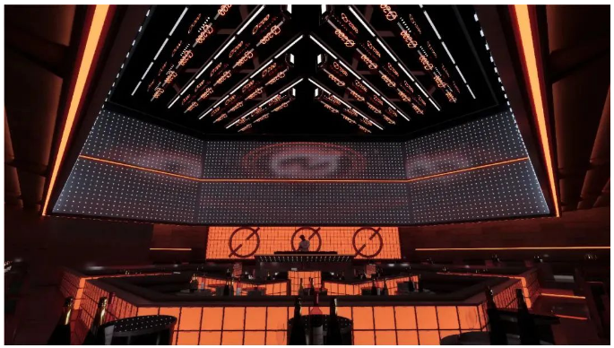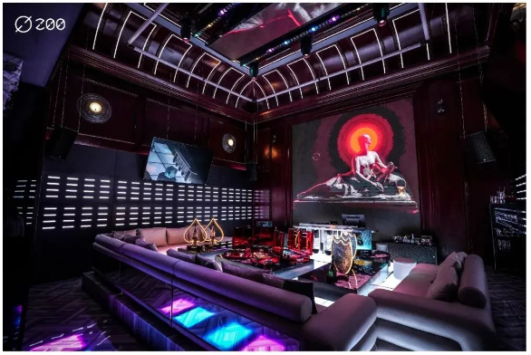 9米挑高空間,讓人耽迷於極致自如半透明水晶屏幕與可升降星體造型燈跟隨音樂韻律變幻姿態。