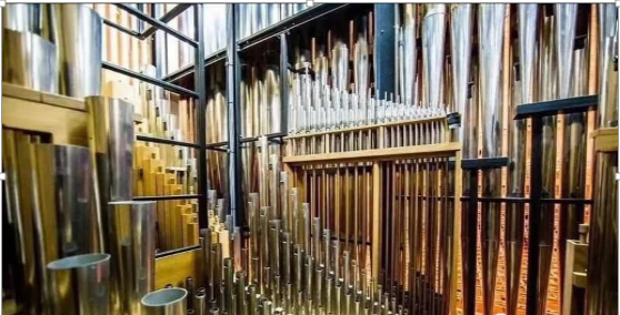 安放于音樂廳的管風琴造型典雅,音色飽滿,是目前國內體積最大、栓數最多、音管最多、音色最豐富的一架,擁有94個音栓,發聲管達6500根之多,能滿足各種不同流派作品演出的需要,因此被形象地稱為音樂廳的“鎮廳之寶”。
