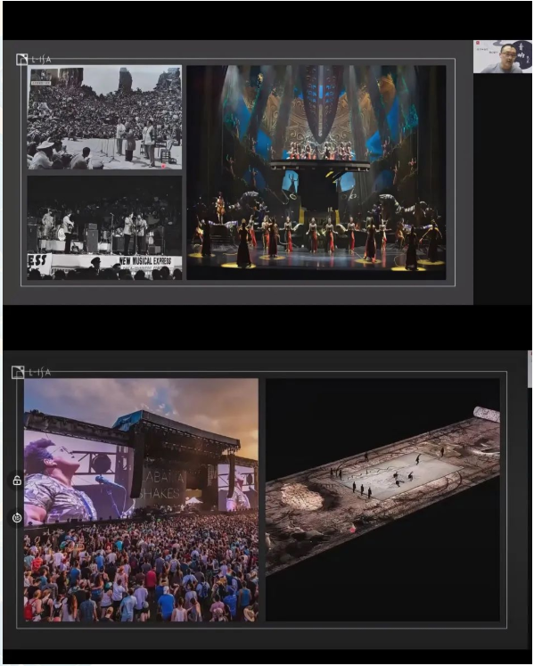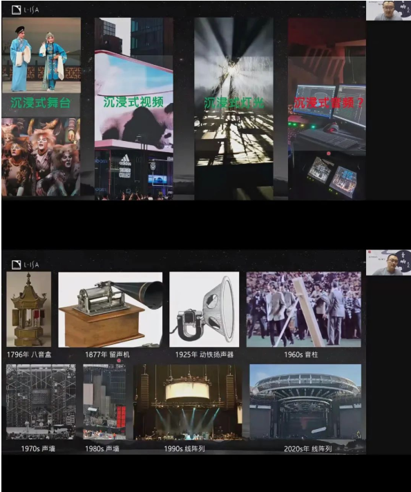 通過摩托車環(huán)繞的音效視頻,介紹了主講嘉賓與其團(tuán)隊如何通過3D科技制造環(huán)繞音效,帶給觀眾沉浸式的聽覺體驗。并且講解追蹤器與拾音話筒如何結(jié)合實現(xiàn)實景與藝術(shù)結(jié)合。音響與舞臺、燈光、布景的融合是未來演出的一種趨勢,能帶給觀眾更真切的體會。